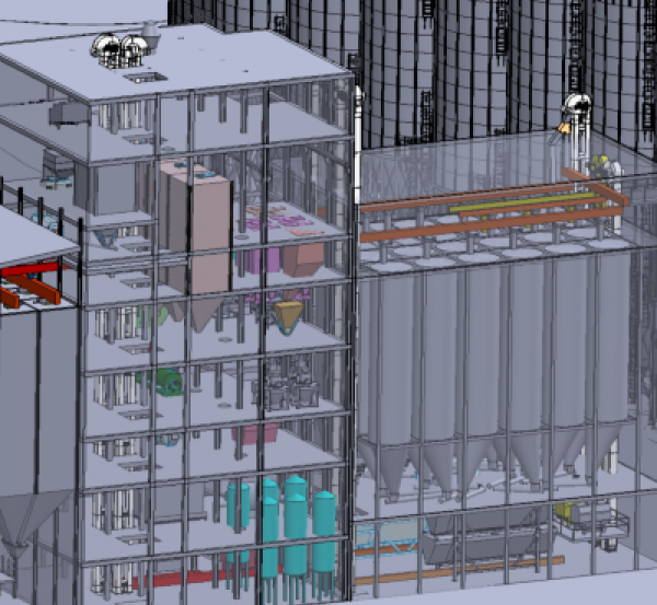 Conberg oferuje kompleksowe projekty kompletnych mieszalni pasz, obejmujące wszystkie kluczowe etapy procesu technologicznego. Realizujemy pełne układy produkcyjne, w tym punkt przyjęcia surowca z magazynem silosów, dozownię, wieżę produkcyjną oraz strefę ekspedycji pasz luzem. Każdy projekt opracowujemy indywidualnie, dostosowując rozwiązania do wymagań inwestora, wydajności zakładu oraz specyfiki surowców.